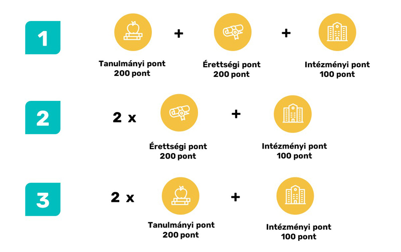 Az igazolt eredmények alapján többféle módon is kiszámítják a jelentkező pontjait, és a felvételi összpontszám meghatározásakor automatikusan a számára legkedvezőbbet veszik figyelembe.