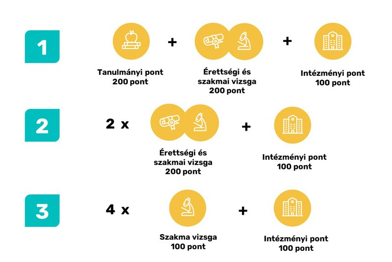 ha a szakmai vizsga értékelése legalább "jó" (4), annak négyszerese alapján: (a figyelembe vehető szakképesítéseket tartalmazó táblázat az aktuális Felvételi tájékoztatóban található).